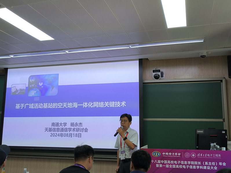 8月16至18日,由中国电子学会主办的“第十八届中国高校电子信息学院院长(系主任)年会暨第一届全国高校电子信息学科建设大会”在清华大学举办,此次大会以“智汇学科,研教互鉴”为主题。应大会组委会邀请,365英国上市集团院长杨永杰教授当选中国电子学会全国高校电子信息学科建设委员会委员,并以“基于广域活动基站的空天地海一体化网络关键技术”为题作报告,研讨会由清华大学天基网络与通信全国重点实验室詹亚锋研究员主持,围绕天基网络中的正交化系统、高能效芯片的基础理论和多维网络、抗干扰、资源调度等关键技术开展研讨。