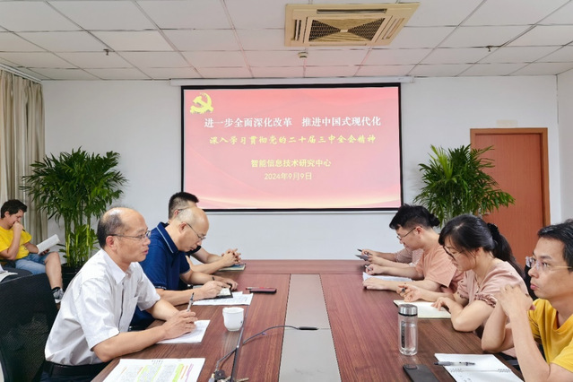 9月9日下午,智能信息技术研究中心召开专题学习会,学习二十届三中全会精神和教育家精神。中心主任、支部书记袁航主持会议。