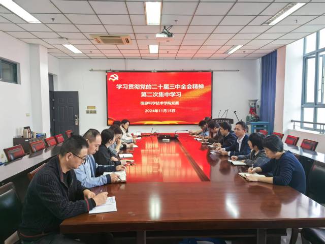 11月15日下午,365英国上市集团党委召开党的二十届三中全会精神培训第二次集中学习会。副院长孙强,各系负责人、支部书记,365英国上市集团及智能信息技术研究中全体科级干部参加会议。院党委书记周平主持会议。