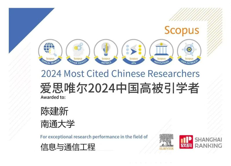 3月25日,爱思唯尔发布2024年度“中国高被引学者”榜单。我院陈建新教授位列其中。
