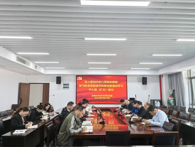 4月23日上午,学院党委举行深入贯彻中央八项规定精神学习教育专题读书班学习会。学院及智能信息技术研究中心班子成员、全体支部书记、系(室)负责人及科级以上党员干部参加学习会。院党委书记周平主持会议。