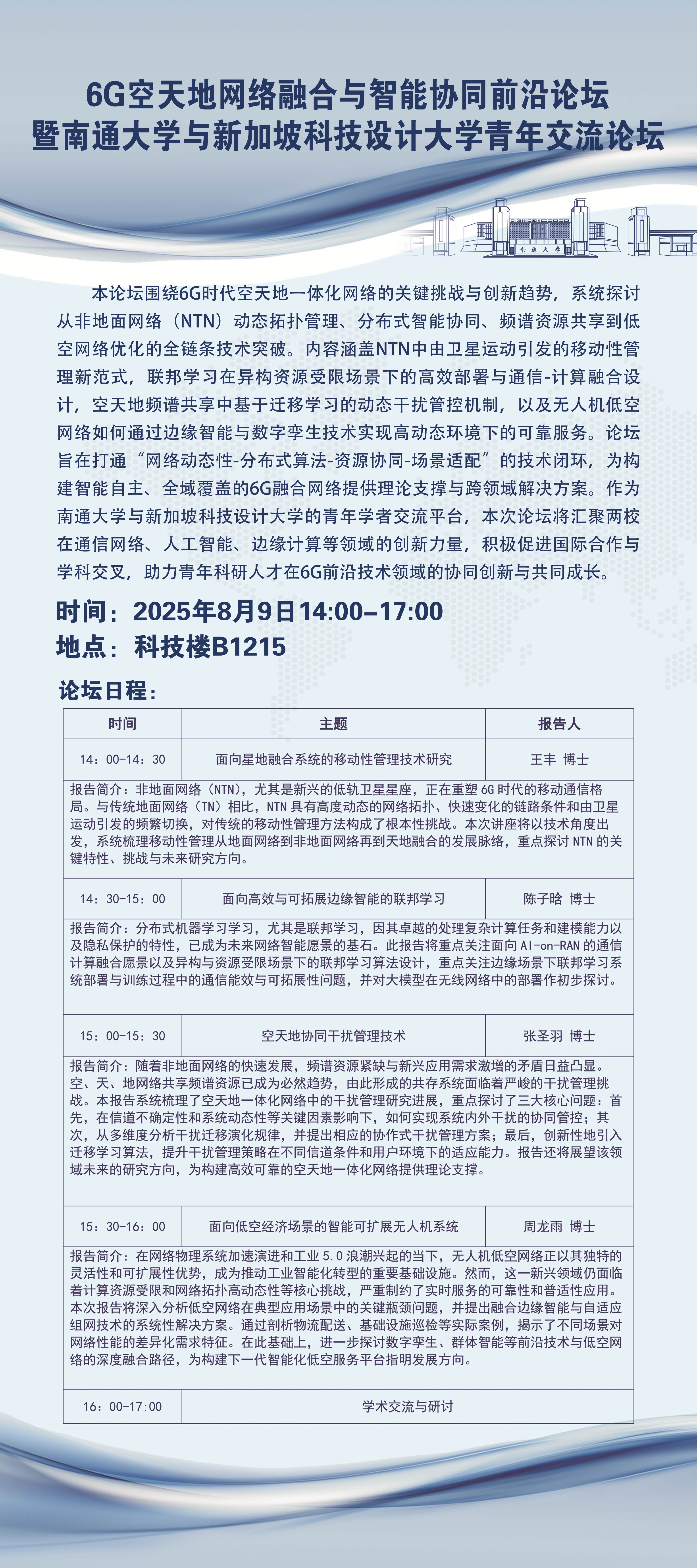 活动预告:6G空天地网络融合与智能协同前沿论坛暨英国365上市公司与新加坡科技设计大学青年交流论坛