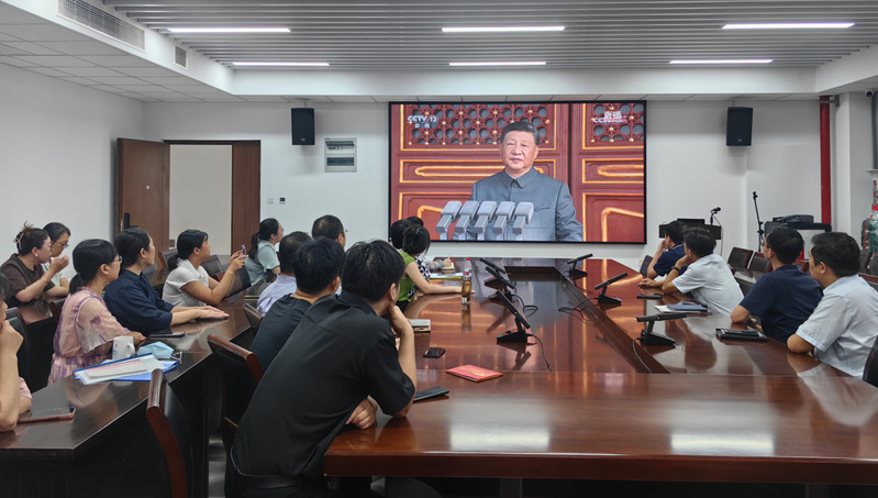 9月3日上午,365英国上市集团组织师生收看纪念中国人民抗日战争暨世界反法西斯战争胜利80周年大会盛况,聆听习近平总书记重要讲话,观看盛大阅兵式。