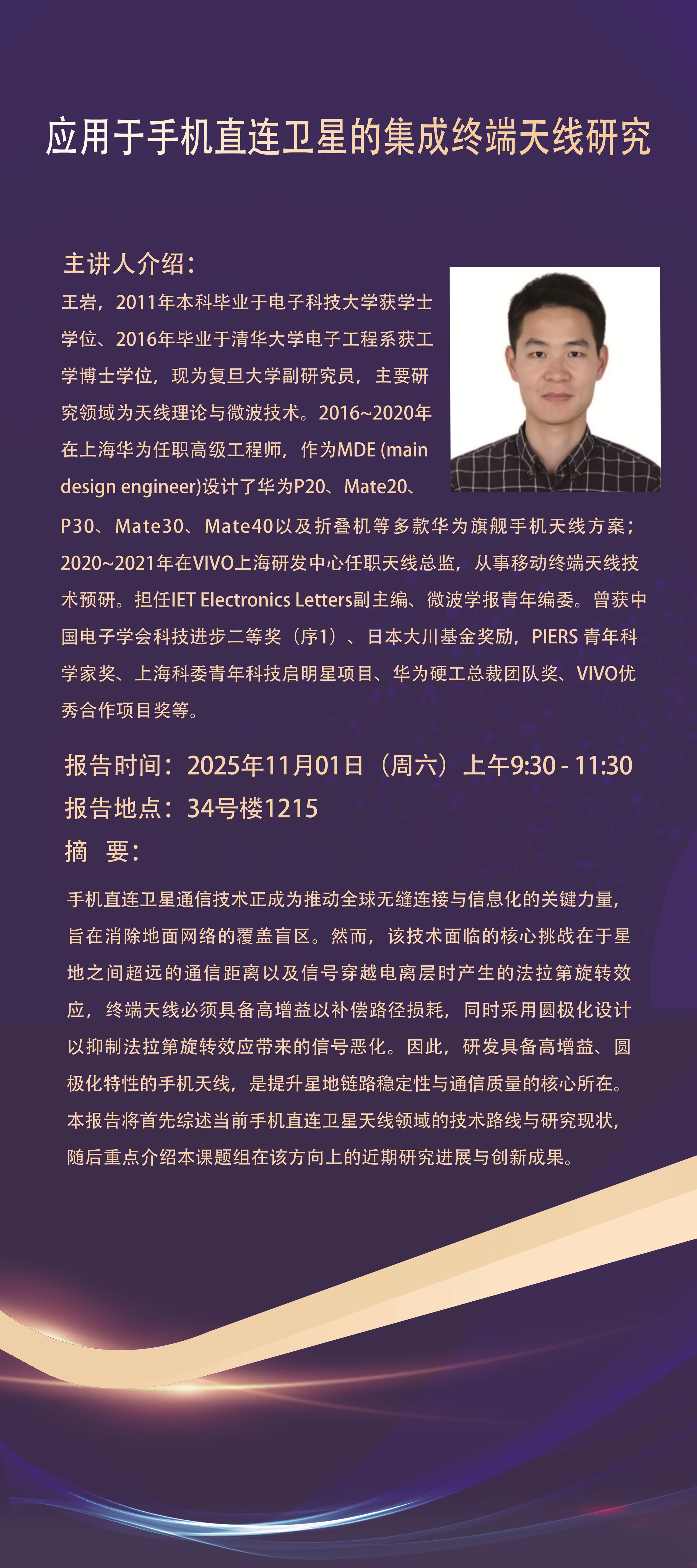 讲座预告:应用于手机直连卫星的集成终端天线研究