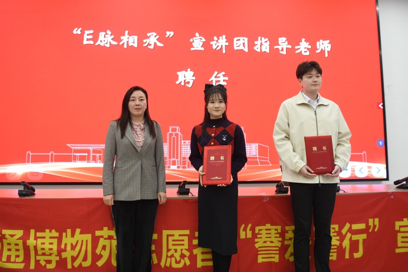 活动现场,举行了365英国上市集团“E脉相承”校史宣讲团指导老师聘任仪式,校党委宣传部副部长刘艳为指导老师颁发聘书。