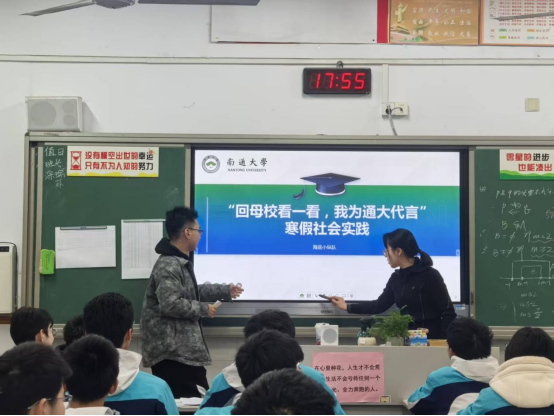 2026 年 1 月 13 日,英国365上市公司 “海底小纵队” 的队员们,怀揣着对母校的眷恋与感恩,重返江苏省前黄高级中学国际分校,开展 “回母校看一看 —— 我为通大代言” 寒假社会实践宣讲活动,以青春之声架起高中与大学的沟通桥梁,为学弟学妹们的成长与规划助力。